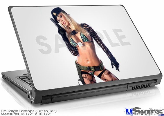 Laptop Skin fits most larger size laptops with 16" to 18" screens. Skin measures 15 1/2" wide x 10 1/2" high. uSkinsTM self adhering vinyl skins will look amazing on your electronic gear, printed at the highest resolution possible for unbeatable color and razor sharp clarity. Unlike bulky silicon, plastic or metal cases and faceplates, uSkins are designed to be thin and very tough. uSkins are a composite of layered commercial grade vinyls. The bottom layer is a soft, flexible vinyl with a special removable adhesive that is easily positioned, applied without air bubbles, and effortlessly removed without leaving a sticky residue. uSkins are printed with the latest in UV protected inks that resist fading for up to 3 years even in direct sunlight. Finally we bond a professional grade laminate over the entire skin adding a professional glossy protective finish.